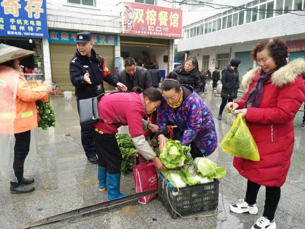 12月23日,靖州站民警对在车站广场卖菜小贩进行清理。