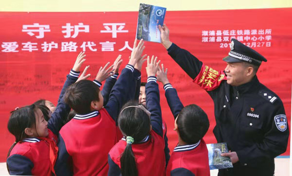 12月27日,湖南怀化铁路公安处低庄站派出所,组织民警深入管内的双井镇中心小学,开展“远离隐患,守护平安”宣传,在元旦节前夕给全校二千余名学生送上了一道特殊的寒假作业。