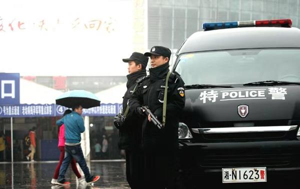 12月30日早晨,湖南怀化铁路公安处特警支队一批队员整队集合,准备前往车站,加强元旦节前后的安全保卫工作。