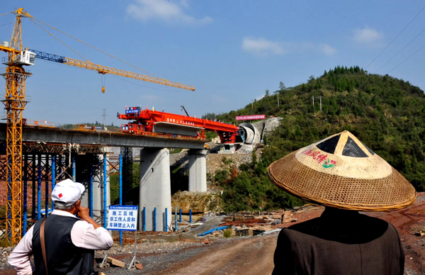 11月4日,随着位于湖南吉首市境内的周家寨大桥的第一片梁稳稳地固定在了两个桥墩之间,张吉怀高铁七标段开始进入架梁施工阶段。与此同时,怀化、麻阳、古丈等地的其它九个标段也开始了架梁施工,这意味着,湘西人民盼望着的张吉怀高铁离通车又近了一步。