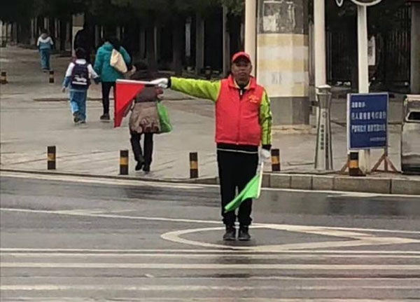 11月27日,在大祥区政府路段,62岁的文明交通劝导员边万丰,给过往的驾驶人和行人留下了深刻的印象。他是当天上午在交警支队邵阳考场考取驾照回到驾校后,得知交警正在组织志愿者开展文明交通劝导活动,就主动报名参加,说要为邵阳创建全国文明城市做点自己力所能及的事。来到劝导岗位后,他结合在驾校所学的文明交通知识,劝导文明,动作规范,在低温天气情况下,始终坚守岗位。