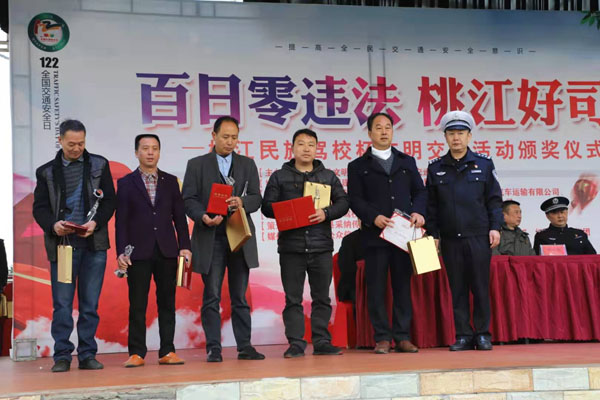 12月2日,是第8个“全国交通安全日”,当日上午9时,益阳市桃江县公安局交警大队联合县文明办、县创建办和交通运输局等部门在大汉广场举办了2019年“全国交通安全日”主题活动暨“百日零违法,桃江好司机”颁奖仪式。