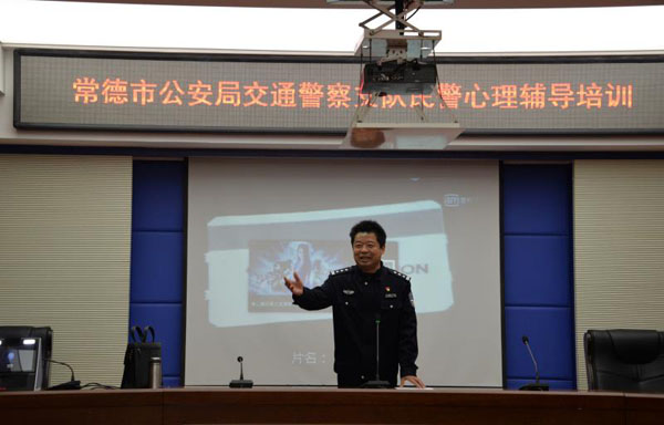 12月24日下午,常德市公安局交警支队在直属一大队会议室举办民警心理健康辅导服务活动,邀请市公安局民警心理健康服务中心核心团队教官培训辅导,进一步提高民警心理健康水平,增强心理抗压能力,推进暖心惠警工程建设。交警支队机关各部门、城区直属各大队民警代表,2019年新招录民警和退伍转业军人参加活动。
