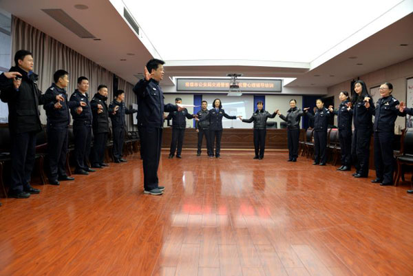 活动现场,市公安局政治部教育训练科副处级侦查员、国家三级心理咨询师石国荣教官针对交警的工作特点及身心特点,精心设计了有趣的辅导互动游戏,通过“集体合作、成语接龙、互相评价、观看短片”等环节,寓教于乐,让大家在轻松愉快的氛围中现场感受、亲身体验、切实掌握自我减压的方法、调适心理状态,缓解压力和疲劳。
