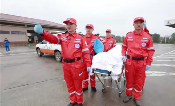 结合实际情况,该名危重伤员被紧急护送至事故点附近的雷锋服务区等待航空救援。