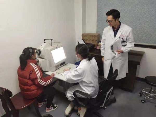 (图5:常德市第一人民医院眼科医护人员加班为扎西央宗完善术前检查)