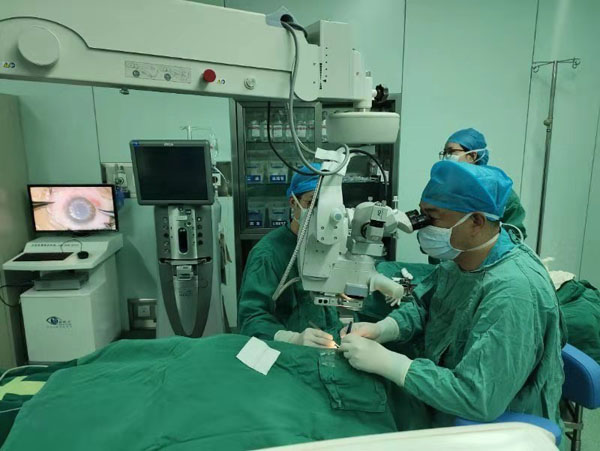 22日上午9时许,扎西央宗被推入手术室。手术由常德市第一人民医院眼科主任医师孙立新主刀,这位眼科学术带头人曾率先在湘西北开展穿透性角膜移植、深板层角膜移植、复杂眼整形等手术,掌握扎西央宗的情况后,孙立新可谓胸有成竹。不到一个小时的时间,剪切、移植、缝合一气呵成,手术顺利完成。