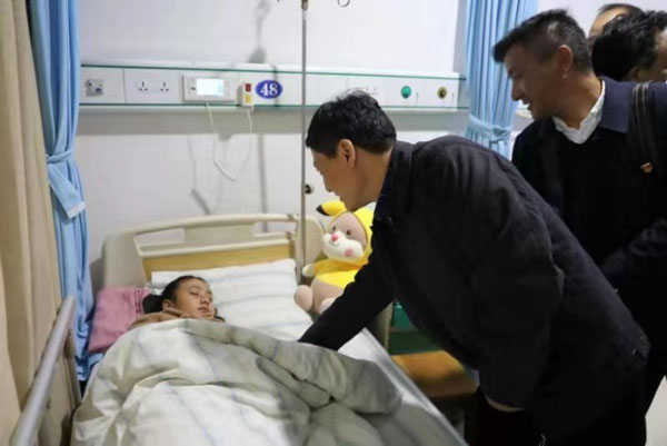 11月29日,西藏自治区隆子县人大代表团在常德访问期间,隆子县委副书记、县人大常委会主任洛桑在常德市人大及援藏队领导的陪同下看望了康复中的扎西央宗,用纯熟的汉语向医院和所有医护人员一一致谢。洛桑鼓励扎西央宗,常德援藏队及常德市第一人民医院让她重生,一定要努力学习报答社会!