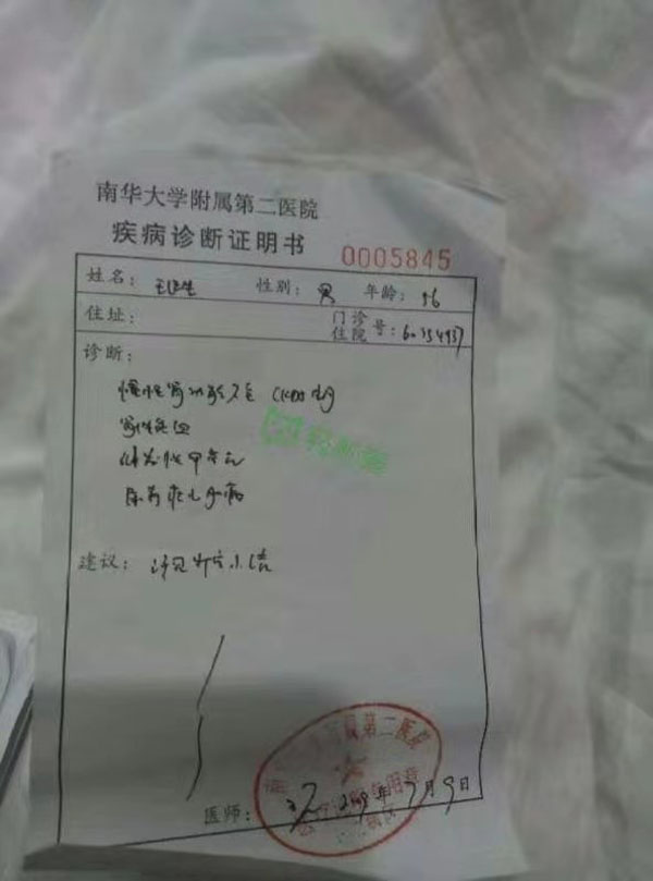万万没想到的是,还有更大的磨难在后头。去年年底,丈夫突然昏倒休克,先在衡阳县中医医院抢救,后又被送到南华大学新附二医院,最终被确诊为尿毒症。一时间刘冬香有种天塌下来的感觉,难以接受。但本性善良的她,硬是把泪水咽进了肚子里,四处奔波借钱抢救丈夫。
