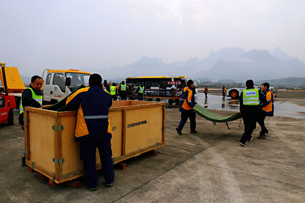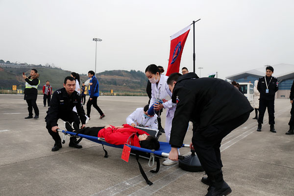 12月26日,张家界机场开展“护鹰2019”应急救援综合演练,助力即将到来的春运保障,确保旅客平安出行。此次演练模拟一架搭载35名乘客和机组的航空器在即将落地阶段突发发动机故障,迫降在机场E11区跑道南侧后,右边发动机出现明火,造成1人重伤,7人轻伤,机场随即开展应急救援信息传递与报告、航空器消防灭火、旅客紧急疏散、现场人员医疗救护、残损航空器搬移等一系列工作的场景。