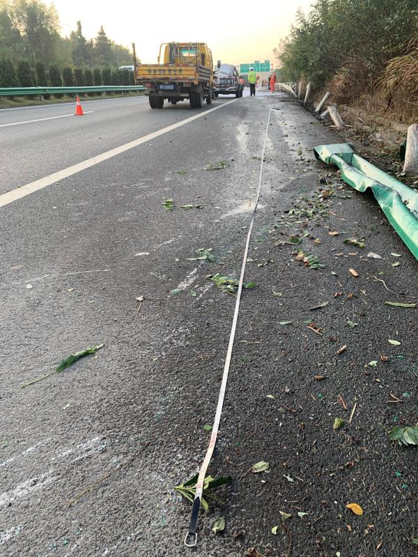 8时10分施救站、养护所人员到达事故现场,各联动单位立即分工合作,共同展开救援。路政队员迅速展开救援工作,做好摆放锥桶等安全措施;配合交警疏导交通,维护现场通行秩序,并对事故现场进行勘察。