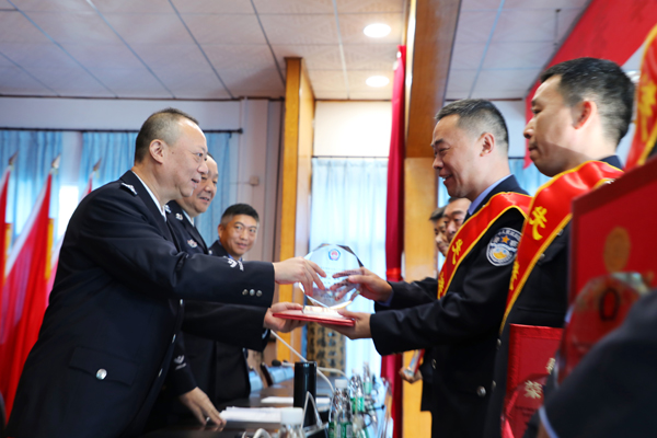 期间,全体人员观看了线路封闭专题片《突围》,回顾了近10年来怀铁公安在线路封闭工作中,各级组织勇于担当、攻坚克难和一线民警创新作为、甘于奉献的工作场景。随后,处领导分别为荣获先进集体、先进个人及特别荣誉个人称号的单位及个人颁奖,激励全体干部民警奋勇争先、再创佳绩。