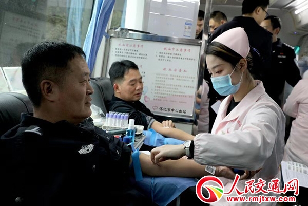 近年来,怀化铁路公安处民警积极参加社会无上献血活动,形成了一个良好的献血服务群体。该处民警叶剑从1997年开始,坚持无偿献血22年从不间断,先后献血90次,共计43000毫升,相当于10个成年人全身换了1次血,曾两次获得国家卫生委员会、中国红十字会总会颁发的金奖,三次获得湖南省卫生委员会、红十字会颁发的金银铜奖;民警吴葵、丁军坚持无偿献血十多年,先后获得国家卫生委员会和湖南省卫生委员会颁发的金奖和银奖。不少参加献血的民警们,还积极动员自己的家人也投入到献血的行列,使献血的队伍不断扩大。据统计,怀化铁路公安处近年有80多名干部和民警参加了社会无偿献血,21人次获得了国家、湖南省卫生委员会、中国红十字会总会颁发的各个等级的荣誉证书。