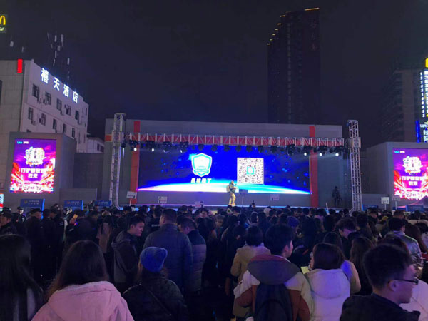 17时30分,中心广场热闹非凡,广场两侧LED显示屏滚动播放着《守护解放西》的精彩片段,炫丽灿烂,气势恢宏。2000余名参与“守护解放西·我来”星城园丁坡子街巡逻的粉丝和网友们与肆意飘洒的冬雨交相辉映,他们早早来到这里,扫码下载注册星城园丁APP,领取巡逻任务,在打卡墙前打卡,在签名墙上签到,并在现场与8位网红民警的海报拍照合影。