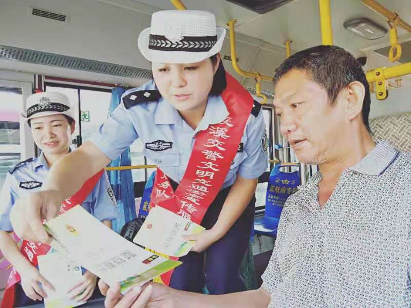 为认真做好中秋节小长假期间交通安全管理工作,提高辖区群众交通安全意识,保障道路安全畅通,9月13日,辰溪交警组织“文明交通安全宣传”小分队走进辖区怀运集团辰溪分公司汽车站开展交通安全宣传活动,“面对面”为司乘人员和节日出行群众送去“平安礼”。