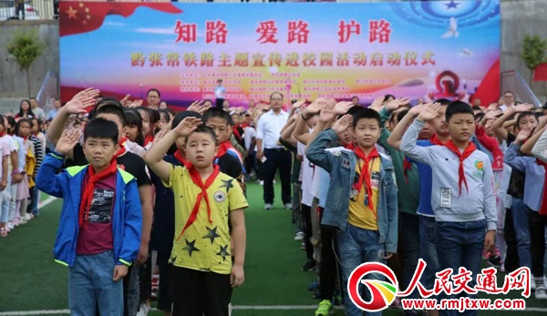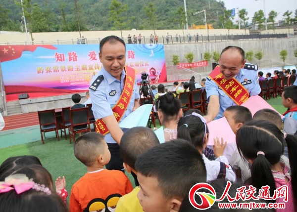 9月9日,重庆市黔江区舟白小学广场上歌舞飞扬,荡漾着一派欢乐的气象。这是怀化铁路公安处“平安站车路,金盾护你行”安全宣传小分队走进在建的黔张常铁路,联合当地开展的一次“知路、爱路、护路”进校园主题宣传活动,二千多名师生参加了这场大型的仪式。