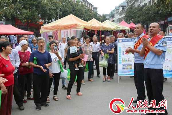 当天,是湖北省咸丰县朝阳寺区农贸市场赶集的日子。针对群众集中人员多、关注铁路程度高、急于了解铁路通车时间等问题,为了让大家从这出“戏”中品出铁路安全和法律知识,宣传小分队的民警们,特意在宣传节目中增加了互动环节。如“行走铁路有哪些危险?”“离铁路多远才能放风筝?”“击打列车会造成什么后果?”等问题,让现场群众抢答,答对的发给一份纪念品,没有答对的,民警都会给出正确的答案,使大家在接受宣传中都能了解一些铁路安全知识。据统计,这次宣传,共为群众发送宣传资料500多份,赠送纪念品150多件。