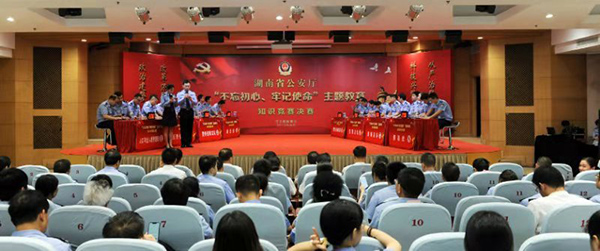 8月23日,湖南省公安厅举办“不忘初心、牢记使命”主题教育知识竞赛,厅党委委员、副厅长汤向荣,副巡视员姚涤非等领导出席活动,驻厅纪检监察组副组长张世平,机关党委专职副书记毛志兵、方土林担任大赛评委。厅属8个单位代表队、24名选手现场竞技、激烈竞争,机关300余名党员民警职工观摩比赛、观看学习。
