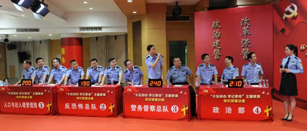 为检验学习教育成效,营造比学赶超的良好氛围,省公安厅举办知识竞赛以赛考学、以赛促学。初赛采取一定比例随机抽考的方式进行,110名党员民警参加笔试,总分排名前八的厅属单位进入决赛。