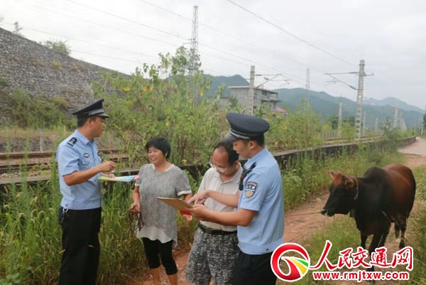 “孩子们,跨越铁路危及人身安全,千万不要去冒险!”“老乡,请不要在铁路边放牛,防止耕牛上道造成不良后果。”8月29日早上,湖南怀化铁路公安处低庄站派出所,组织民警在管内重点线路边设立“流动课堂”,对附近的村民群众进行爱车护路安全教育。