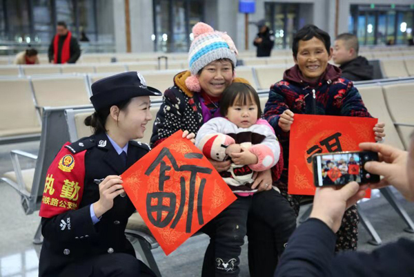 1月10日,是全国春运的第一天。为充分展示铁路民警的良好职业风采,地处黔张常高铁线上的张家界西派出所,及时与张家界市相关部门联合,在张家界西站二楼候车厅开展了“五福迎春”唱平安宣传活动,以这种形式迎接通车后的第一个春运。