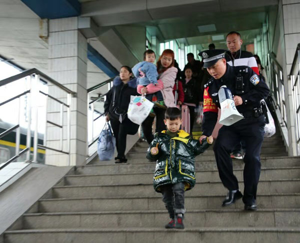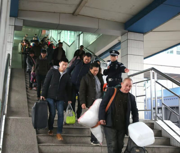 1月15日上午8点多钟,在湖南怀化火车站旅客进站乘车的天桥楼梯口,一位手持电喇叭的民警在这里不停地忙碌,维护秩序、扶老携幼,帮助下楼梯的重点旅客。他叫曾建明,是怀化火车站派出所的副所长。
