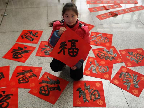 这次活动共为旅客书写福字400余个,春联300多幅。