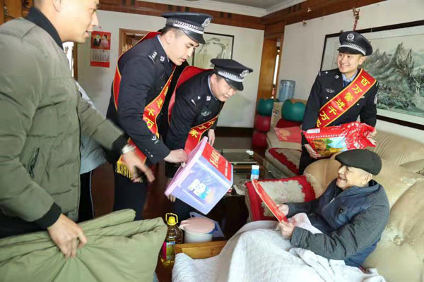 元月19日,湖南怀化铁路公安处团委组织11名青年志愿者和怀化市共青团委及当地茅谷冲社区共20名工作人员分三个组来到社区9名特困户、低保户、残疾人家庭进行慰问,送去油、米、被子、水果、书包、春联等物品,并同时送去新年的祝福。