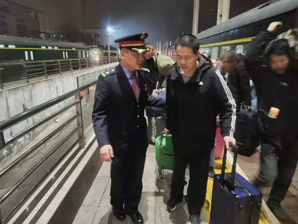 列车正点到达武昌站,患者的家人来到车站接他,乘务员杨海全一直守候在旅客身边并照顾至到站。列车长尚文才还不断嘱咐患者回家后及时到医院进行检查。患者和家人对列车工作人员真诚表示感谢。