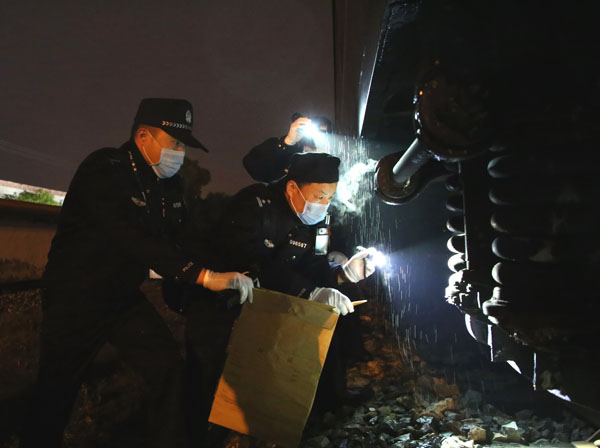 1月21日晚,广州铁路公安局怀化公安处民警在进行排爆演练。当晚,该处民警接到警情指令,冒雨迅速前往管内的铁路站区,对一趟发现“危险物品”的停放列车进行隐患排除。参战民警把演练当成真仗来打,顺利地完成了任务。(通讯员 刘亚平)