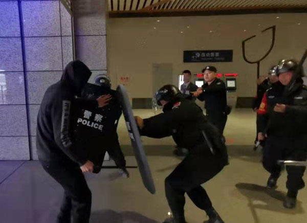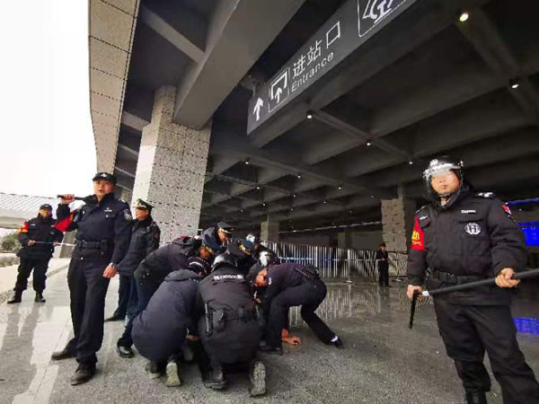 2020年春运,是张家界西站迎来的第一个春运,为全力确保春运安保首战胜利,1月22日,怀化铁路公安处张家界西站派出所围绕“刀斧砍杀旅客、强行闯关”等警情,组织路地公安、张家界西站广场综管办及车站职工联合开展反恐处突演练。