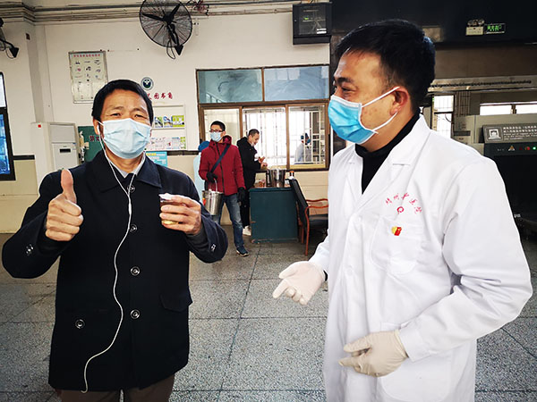 元月31日正月初七,天空下着细雨,有一丝寒意,但在湖南怀化靖州火车站广场上有一群身着警服、白大褂、铁路工作服......胸前佩戴党微的一群人向党旗激昂宣誓。这是靖州火车站抗"疫"临时党支部在岗的16名党员向党旗庄严宣誓:“忠于党、忠于人民......,坚守岗位,永不退缩,坚决打赢抗"疫"阻击战”。这些党员来自靖州县交通局、中医院、火车站、靖州站派出所四个单位,宣誓完毕后每位党员都签订了抗"疫"责任状。期间临时党支部组织党员煮了一大锅预防感冒的中药茶带到候车室,向乘车旅客送上一杯杯热气腾腾的茶水御寒,并嘱咐他们旅途中一些抗“疫”注意事项。一些旅客感动的伸出大姆指说道:“疫情无情人有情,感谢你们为我们送上暖心茶和平安祝福,同时也祝你们工作顺利,多保重身体”!旅客们发自肺腑的语言和衷心的感谢激励了党员,大家纷纷走上各自的岗位,为下一趟列车到达做好准备。室外小雨还在下,但他们的工作热情不减。(通讯员:彭双翼、王利君、丁勇)