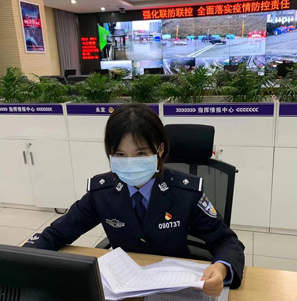 唐璐在指挥中心专门负责疫情接报和相关大数据研判推送,但近期接到了需要增援张家界西高速入口检测堵卡的工作要求,作为党员民警的唐璐,主动请缨前往一线增援。