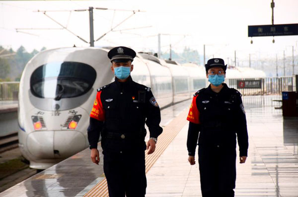 疫情在前,警察不退。为了旅客平安健康出行,该处领导班子成员分片区包保,分头深入包保所队开展疫情防控工作,着力解决疫情防控工作的困难和问题,积极构建群防群控、群策群力的防控体系。该处党委抽调机关干部到乘警支队和派出所开展工作。全处各所队干部民警充分发挥人民警察为人民的宗旨意识,坚守防控疫情一线,及时排查疫情,开展防疫宣传,服务旅客群众;严密治安防控,严厉打击各类违法犯罪活动,坚决维护管内社会治安大局稳定和铁路运输安全畅通。1 月 29 日,衡阳铁路公安处衡山西站派出所民警在巡逻中发现,部分旅客因购买不到口罩,出行中并未佩戴口罩,为更好保护旅客安全,衡山西站派出所民警主动联系当地政府和相关企业,争取来部分口罩,为旅客及高铁沿线困难群众免费发放口罩 400 余个,消毒液 100 余瓶。1月27日,G2056次列车迎来由广州中医大学第一附属医院组成的医疗队支援武汉,200多箱医疗物资需在短短三分钟内卸下高铁,该处值乘民警欧阳天兵有序组织,发动列车工作人员及旅客群众力量,齐心协力及时将支援物资搬下高铁。