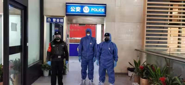 “这位旅客,麻烦配合测一下体温”2月4日一大早点完名后,长沙火车南站派出所值勤二大队大队长周忠,像往常一样,整理好警服,戴好口罩,开始了一天的巡查。新型冠状病毒感染的肺炎疫情发生后,长沙南站相继停运了200余趟列车,每日发送旅客不足2万余人。旅客虽少,但周忠巡查的脚步一刻也没有停下,协调、防范和应对站区治安管控及可能会发生的各类突发事件,核查旅客信息,协同处理列车移交的发热病人,协助医务人员为旅客测量体温,排查是否有疑似病情旅客等,在所有人都闭门不出的时期,他当天的微信步数超过了2万步,他也成为站区最忙碌的人。当日上午11时30分许,巡视完毕的周忠刚进入值勤室,就接到长沙南站综控室电话:贵阳北开往北京西,途径武汉的G82次列车上,有一名发热病人,该车马上就要到达长沙南站,周忠放下电话,立即让其他同事穿好防护服,然后带领民警冲出了值勤室前往列车停靠站台,车一到站,他和同事一起配合车站及卫生疾控部门在该车4号车厢接到了这名发热旅客,并由疾控中心人员将该旅客送至医院就诊观察。等他处理完回到值勤室,才发现已经是下午13时许,自己中饭还没有吃。虽然不知道防护服里面的你是谁,可你头顶上闪烁的警徽却告诉我:你是铁路警察。