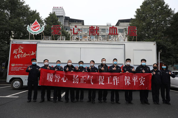 在到达指定献血点后,民警依次进行信息登记、血液检验、静脉采血等环节。在疫情面前,他们没有过多考虑自己的安危,献血中,他们虽都戴着口罩,但个个眼神坚定。“现在是抗击新型冠状病毒的关键期,你们还来献血,真的很有心。”工作人员称赞道,“近期献血的人肯定比较少,身边很多同事都在抗疫一线,我也想尽一份自己的心意。”正在献血的衡阳北站派出所副所长吕嘉友对血液中心工作人员说道。