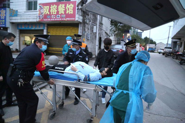 获悉情况后四人立即上车,并与列车长联系,在征求了旅客陈钱夫妇意见后,由列车长编写客运记录将陈钱夫妇俩交靖州站送医待产。在民警和客运员的帮助下,夫妇俩被临时安置在靖州站疫情防控处置安置房休息。在工作人员拨打120急救电话的同时,靖州县火车站疫情防控工作组的医护人员对陈钱夫妇俩进行体温检测登记和简单的医务护理。在工作人员体贴细致的帮助下,夫妇俩惶恐的心情逐渐平复下来。6点45分,120救护车及时赶到靖州站出站口,在大家的帮助下,待产孕妇和家人顺利的搭乘救护车前往靖州人民医院。