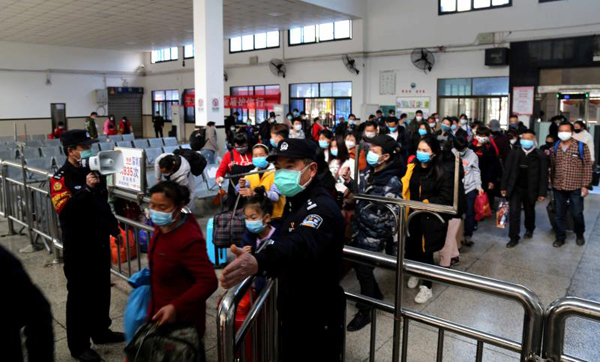 为最大限度降低返程疫情传播风险,怀化铁路公安处下发了《疫情期间复工返程客流安保疏散工作方案》,加强与地方政府的沟通协调,并会同客运部门完善旅客进站、上车等环节的疫情防控和服务措施,采取设立缓冲区、分段放行、分散乘车等措施,加强对重点部位的卡控,疏导旅客快速、有序进出站、上下车,最大限度避免旅客聚集。
