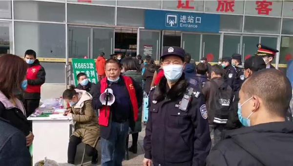 怀化铁路公安处石门站派出所积极与地方政府和车站进行联系沟通,在进站口、候车室配合政府工作人员及医护人员对务工人员进行进站秩序维护、体温测量等工作,在候车室内划出K6653次候车专区,确保乘车人员的候车和乘降有序。此次专列运送民工赴粤返岗复工,路地紧密配合,组织得当,民工们倍感温馨。