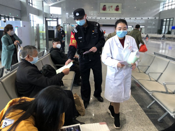 随着国内疫情防控形势得到有效防控,各行各业陆续复工复产,桑植高铁站客流也在日渐增多。为了提升旅客在人流密集的重点区域个人防护意识,桑植站派出所民警联合医务人员,通过现场讲解《公众科学戴口罩指引》,告诉旅客必须戴口罩的情形与何种情况下可以不戴口罩,现场解答旅客各类疑惑。
