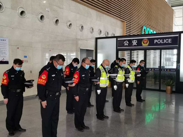 向抗疫英雄们致敬!默哀仪式结束后,长沙南站派出所民警纷纷表示,将以英雄为榜样,凝聚起全所民警的磅礴力量,疫情不退,铁警不退,坚守好自己的岗位,坚决打赢这场疫情防控阻击战,切实保障广大旅客健康平安出行。