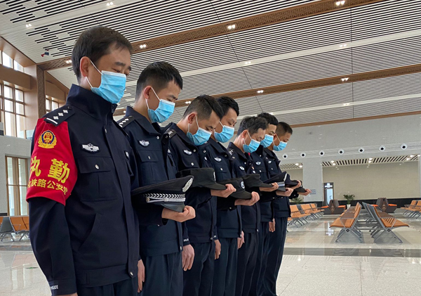 为表达全国各族人民对抗击新冠肺炎疫情斗争牺牲烈士和逝世同胞的深切哀悼,怀化铁路公安处龙山站派出所在龙山北站哀悼活动。上午10时,全体民警低首肃立、集体默哀3分钟,对抗击新冠肺炎疫情斗争牺牲烈士和逝世同胞深切哀悼。在这场全民抗击新冠肺炎疫情的战“疫”中,英雄们的名字令人泪目让人肃然起敬,那些未能留住的同胞令人心痛和惋惜。