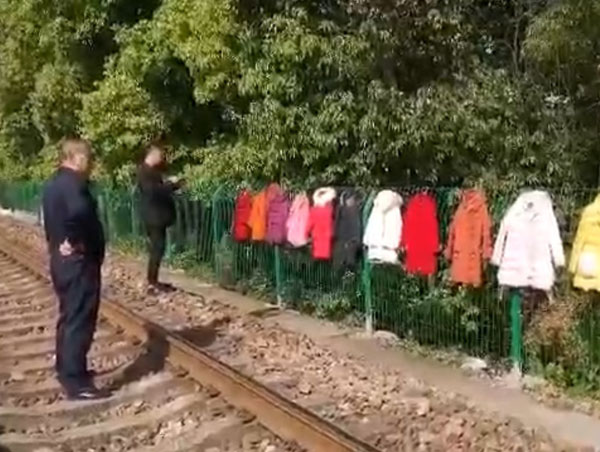 4月14日下午3时许,怀化西站派出所民警在管内铁路巡线检查时,发现位于焦柳线K1192+400米处,上行右侧的防护栅栏上,一字排开凉晒着很多衣服,衣服颜色有红色、白色和黄色等,一数,竟有20来件。
