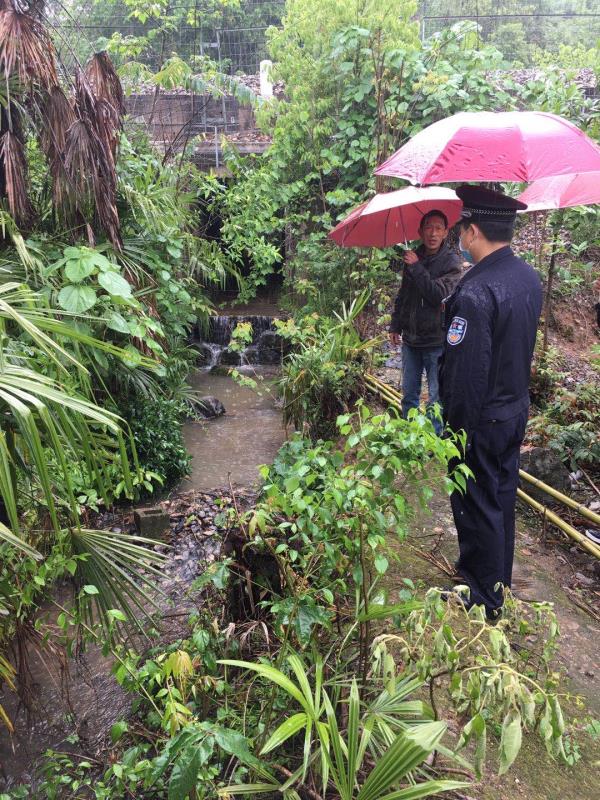 4月21日,石门站派出所领导来到石门北警务区,该警务区民警介绍了辖区内有防洪点八处,全部为巡守点。对铁路线路有隐患的情况为几处泄洪涵,大水将泥石冲下来堵塞涵洞,存在浸泡线路的隐患。当问及泥石流会否冲到线路上时,民警说:不会,因为两边的山势不高,且中间有缓冲地带。随后来到几处泄洪涵洞处查看,发现有石头冲到排水沟里,虽不影响排水泄洪,但也需要及时清理,解除隐患。在与工务部门沟通后,工务说派人来处理。