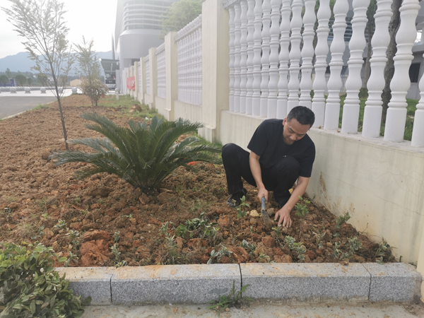 “大家伙加把劲,让我们用自己的劳动将派出所院内装扮好!”