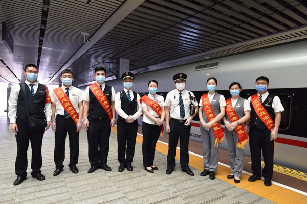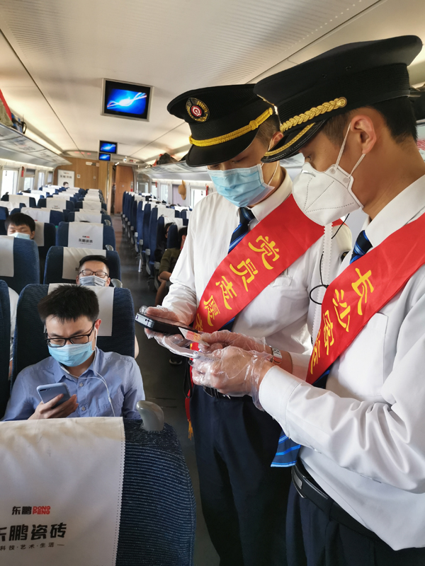 五一期间,长沙客运段高铁动二车队党总支组织休班党员开展“志愿服务优服务、增运增收作贡献”主题党日活动。图为:党员志愿服务队为旅客整行李架、站台指引、列车查验车票、防疫宣传等工作,力争颗粒归仓。(徐晖铭 王腊梅)
