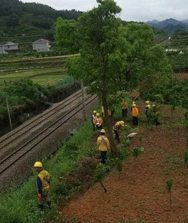 每年梅雨季节,泥土相对松软容易引起树木倾斜倒塌。不仅严重危害铁路列车运行,倾倒的树木树枝与铁路接触网相连,导致线路起火引发铁路断电停车。