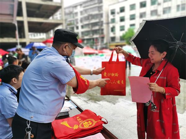 为提升人民群众铁路安全防护意识,保障沿线群众人身安全和铁路运输生产安全。5月13日,怀化铁路公安处安化站派出所联合护铁办、司法所、工商所等8个单位到镇区集贸市场举行全民安全宣传活动。