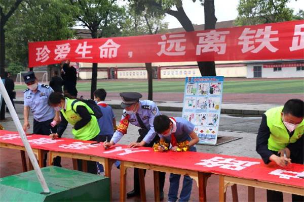 此后,城南学校全体师生共同诵读《知路、爱路、护路倡议书》,怀化铁路公安处民警与共青团志愿者共同给师生发放宣传品,并组织师生参观宣传展板。全体领导、师生共同在“爱路铁路、从我做起”大型横幅上签名活动。