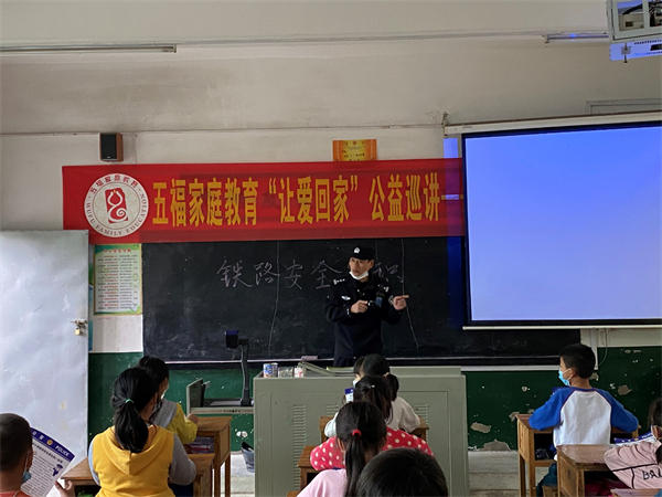 在入校宣传中,马田墟站派出所民警利用多媒体播放PPT课件讲课、播放爱路护路动画片、校园广播、班级微信群等媒介等形式,大力宣传有关铁路安全常识,达到警钟长鸣的效果。